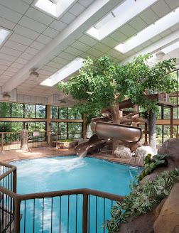 Amenities include a rustic restaurant serving American cuisine, and a bar with a patio and a fire pit. There's also a multi-tiered indoor pool with a waterslide, a whirlpool tub, and a fitness center, plus a deck with mountain views, and 25,000 sq ft of meeting space.