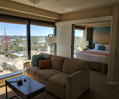 Modern rooms have floor-to-ceiling windows and feature sea-view balconies, free WiFi, cable TV, and coffeemakers. Suites add kitchens with dining areas.