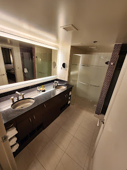 This spacious one-bedroom, one-bathroom suite features a primary bedroom with king-size bed and primary bath with a free-standing shower and separate large whirlpool jet tub. The suite also includes a generous living room with separate dining area, queen sofa bed, projector TV with 8-ft screen, and a full kitchen complete with TV, cooktop, dishwasher, microwave oven, refrigerator, coffee maker, toaster and combination washer/dryer. In-suite amenities include wall safe, iron, ironing board and hairdryer. All Standard units are located on floors 4-39.